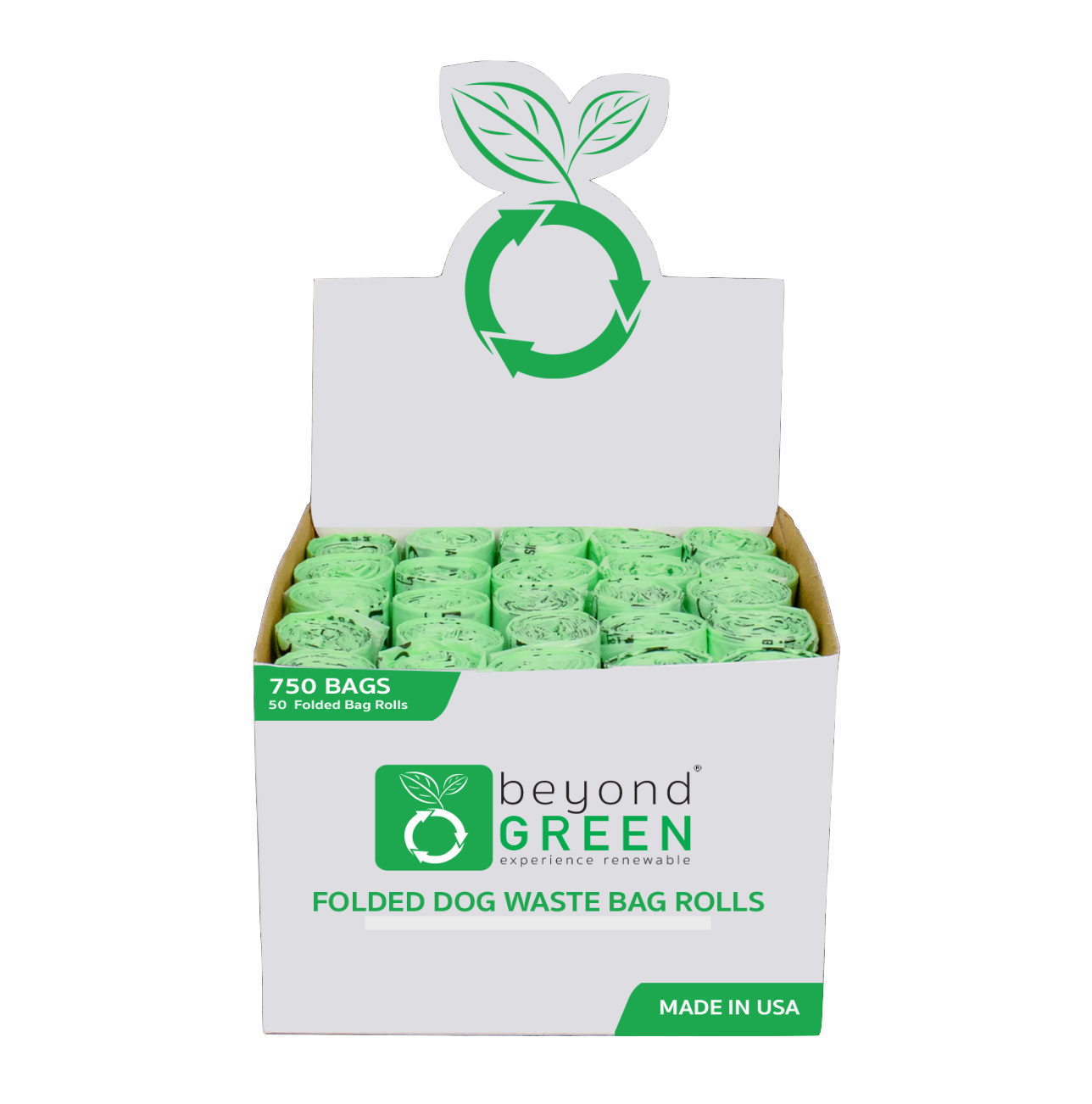 Designed with versatility in mind, the beyondGREEN 750-count bulk pack is the ultimate solution for home users who want long-term convenience and for retail shops seeking an eye-catching point-of-sale display. Each bag is crafted from eco-friendly, plant-based materials, making them a sustainable and responsible choice for pet waste disposal.