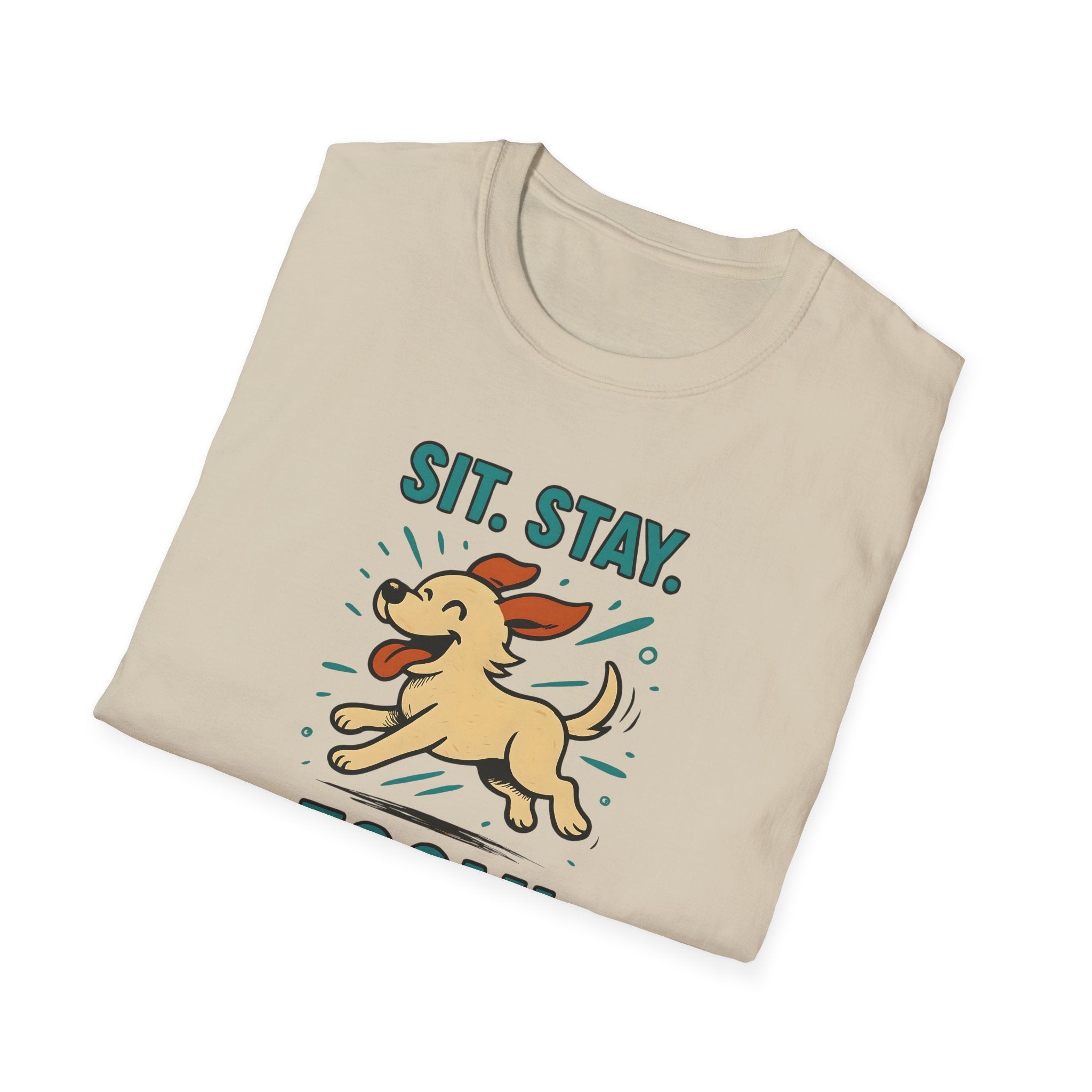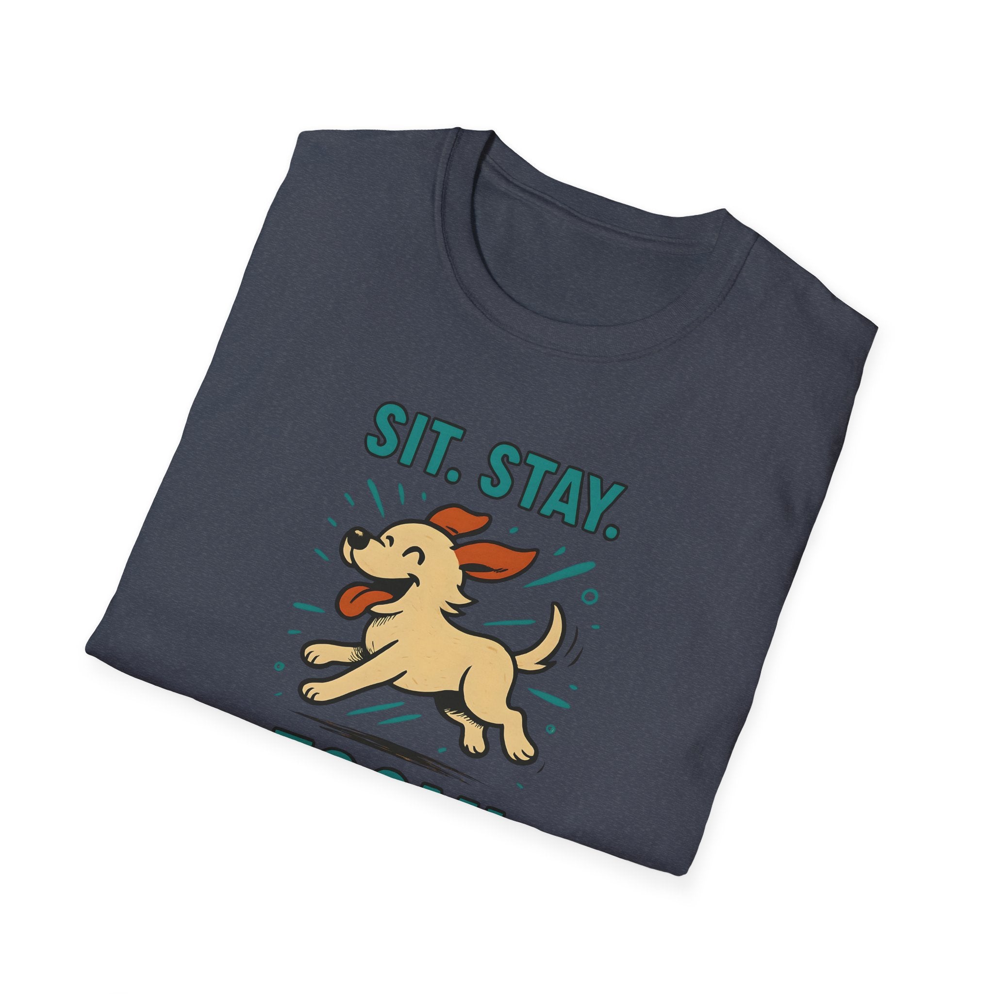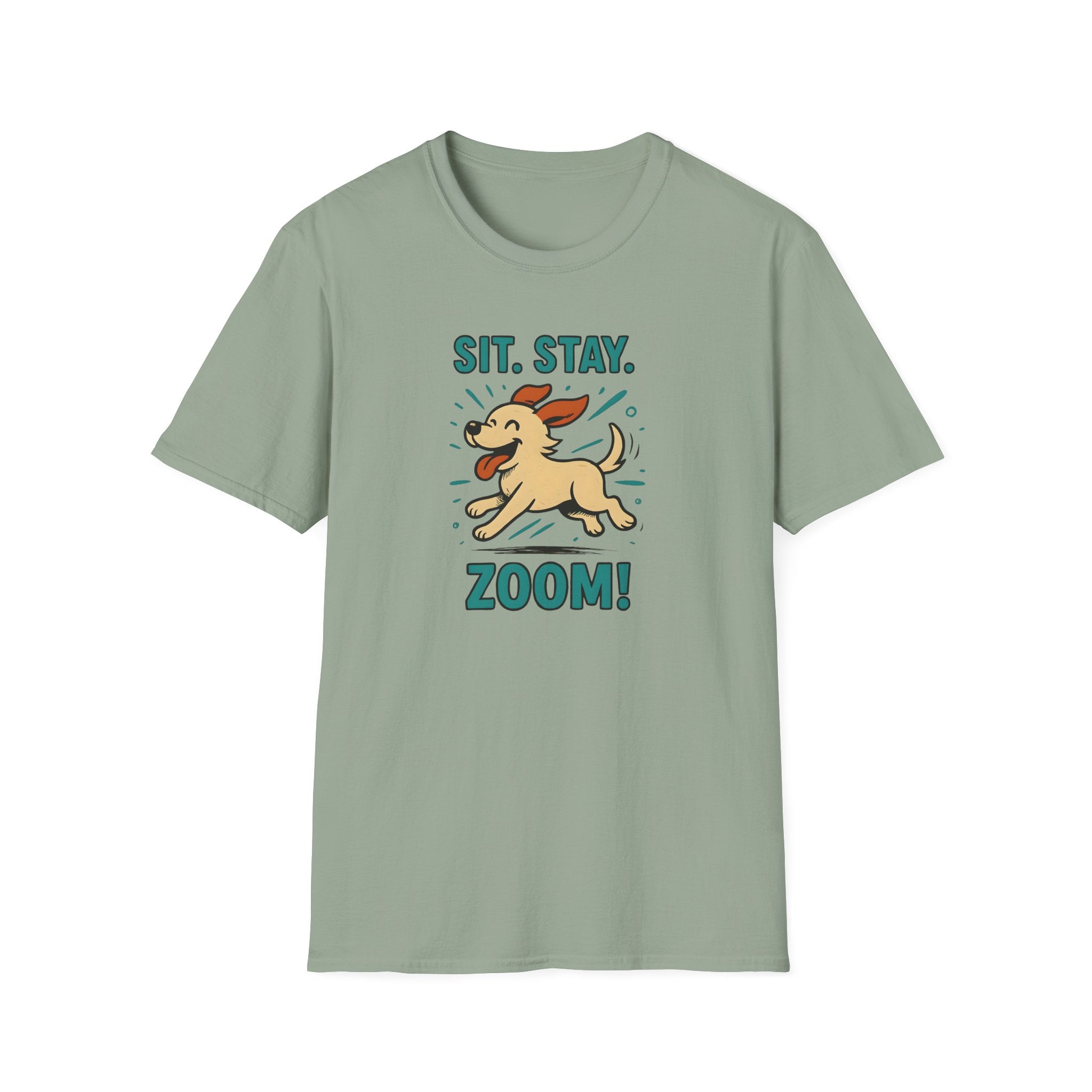 Sit. Stay. Zoom. T-Shirt. Introducing the perfect addition to your casual wardrobe: a Unisex Softstyle T-Shirt that balances comfort and style effortlessly. Made with lightweight, ring-spun cotton, this tee feels incredibly soft against the skin, making it an ideal choice for year-round wear. Its classic fit and crew neckline ensure versatility, allowing you to dress it up or down for any occasion. Whether you're lounging at home, heading out for a casual meetup, or attending a dog park event, this shirt fits seamlessly into your everyday life.